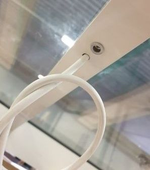 Het aansluitpunt voor de verlichting zit altijd precies in het midden van de tussenstijl. Aan de andere kant komt de kabel met ca. 3 meter overlengte uit de opstand en kan zo worden aangesloten het stroompunt.