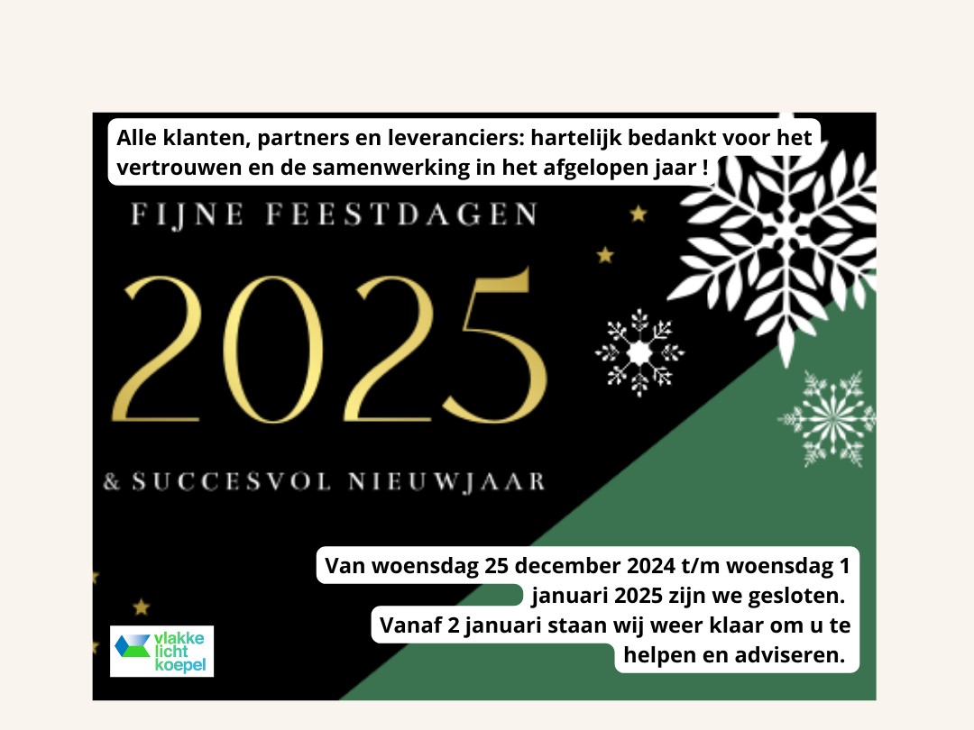 van woensdag 25 december 2024 t/m woensdag 1 januari 2025 zijn we gesloten. Vanaf 2 januari staan wij weer klaar om u te helpen en adviseren.