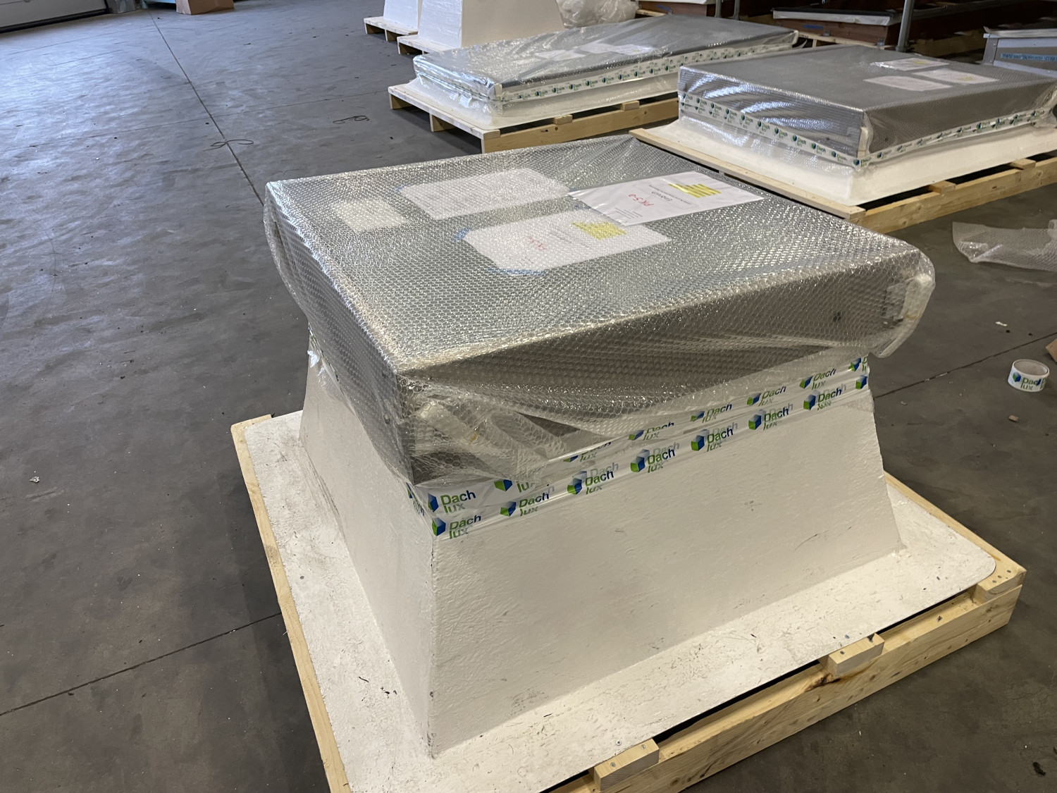 Deze nieuwste produktgroep vervangt de kunststof-bol van een bestaande lichtkoepel door een duurzaam en zeer goed geïsoleerd element van triple-glas. Daartoe zijn er momenteel maar liefst 16 (!) testmodellen onderweg naar IFT Rosenheim. Die worden daar volgende week allemaal getest op: