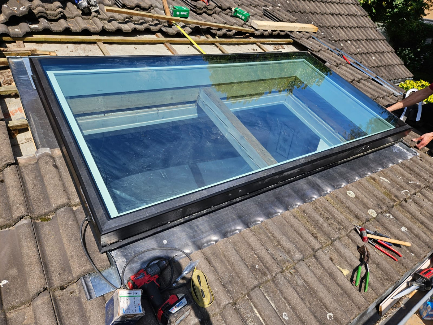 Naast de waterdichting wordt voorgeschreven om de lichtstraat op een dakhelling van maximaal 30 graden te plaatsen. Bij een dakhelling tussen 15-30 graden is het vaak mooier om de lichtstraat niet nog eens van een eigen afschot te voorzien. Het dak loopt dan van zichzelf namelijk al genoeg af voor een goede regenwater- en vuilafvoer. Laat het ons in dat geval dan vooraf weten, dan voeren we het daklicht helemaal vlak uit.