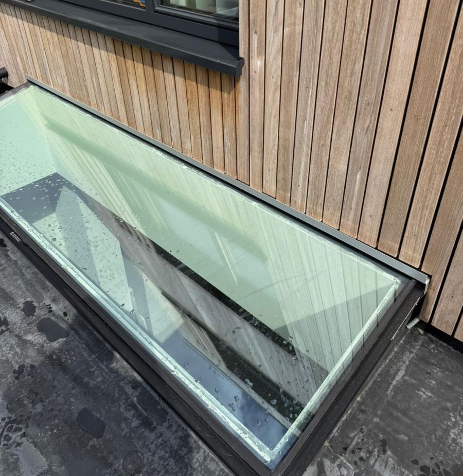 Goed om te weten dat dit op zich geen ingrijpende klus is. Want de opstand van het daklicht kan gewoon blijven zitten en in principe hoeven we niet eens binnen in de woning (het gebouw) te zijn.