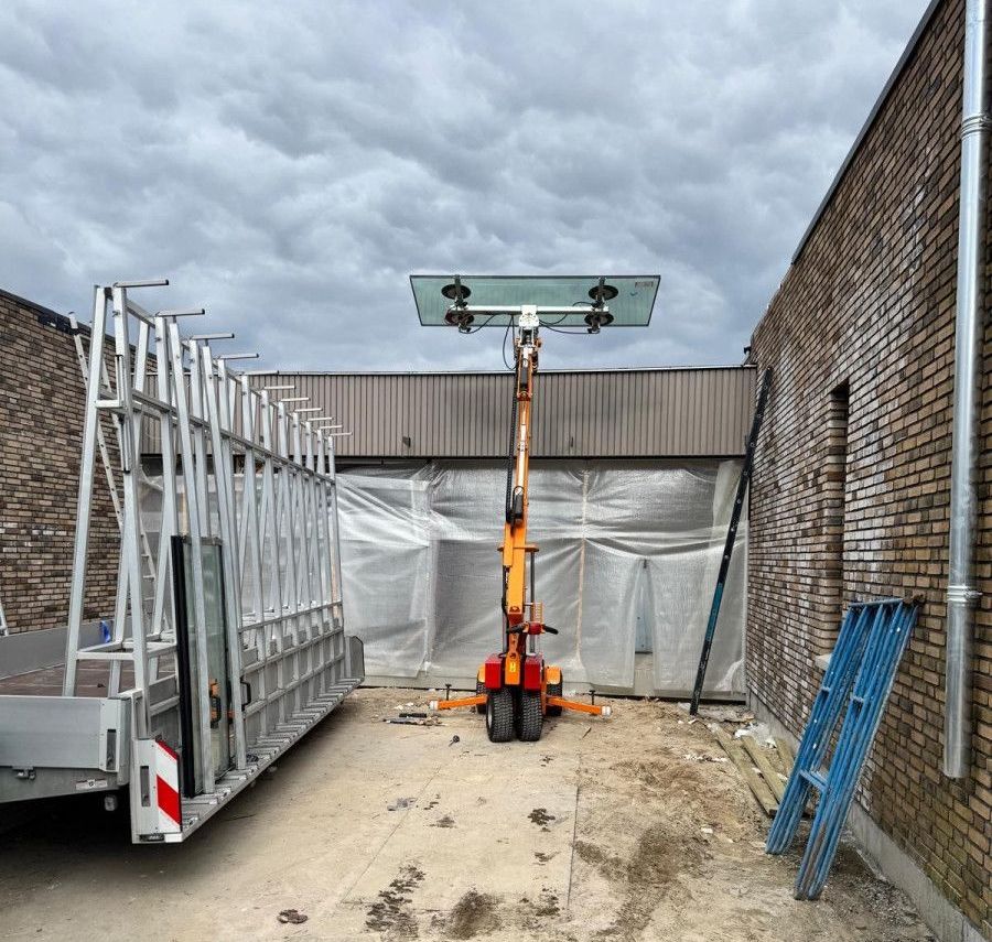 Bij de typische aan- en uitbouwsituaties kunnen we vaak met één van onze eigen glasrobots terecht (zie foto). Dit is de meest efficiente en daardoor goedkoopste situatie. In andere gevallen zal er gebruik gemaakt moeten worden van een ingehuurde kraan, waar hogere kosten mee zijn gemoeid. Voorafgaand aan uitvoering informeren we daarom eerst naar de situatie en brengen op basis daarvan een offerte uit.