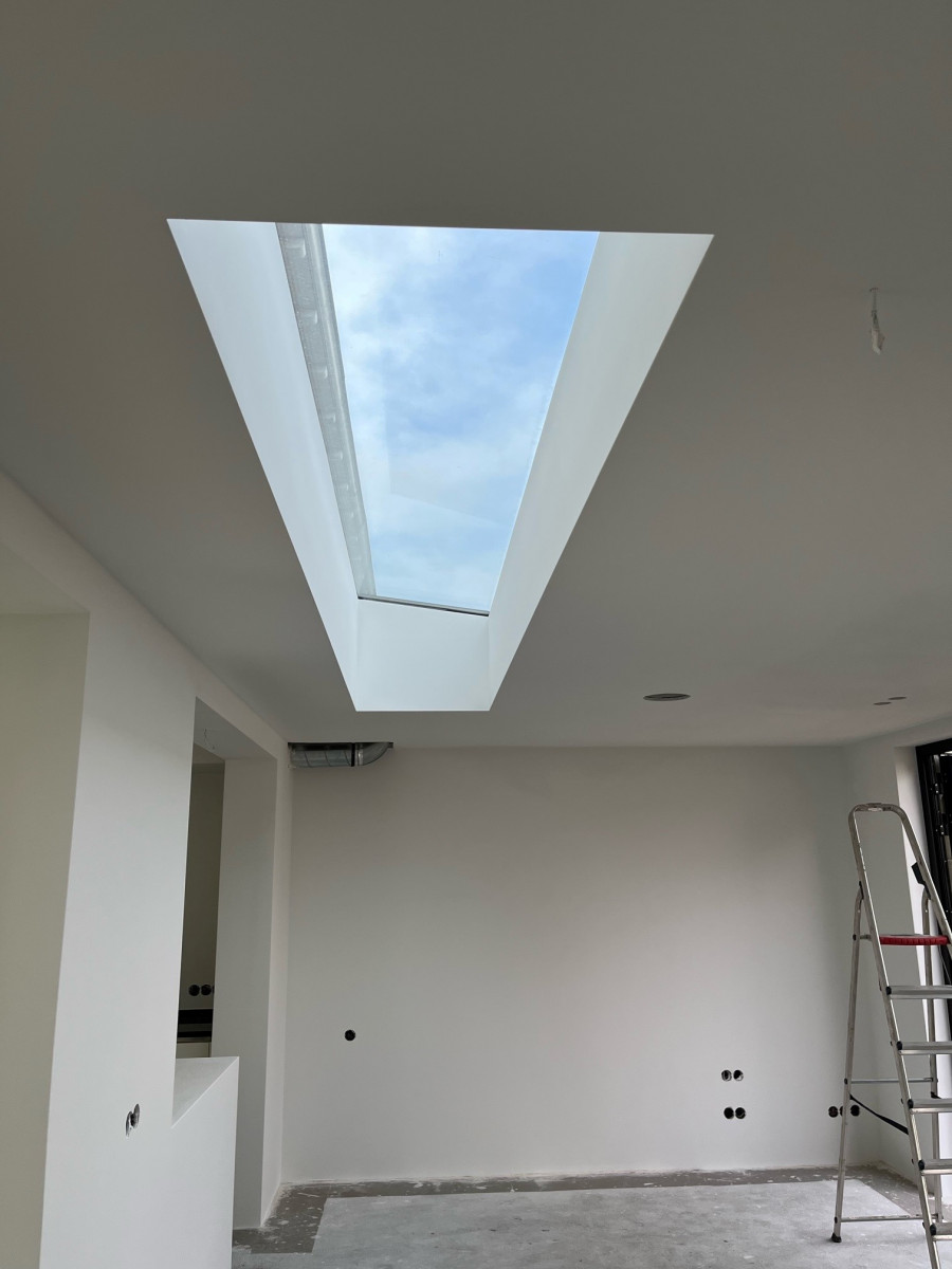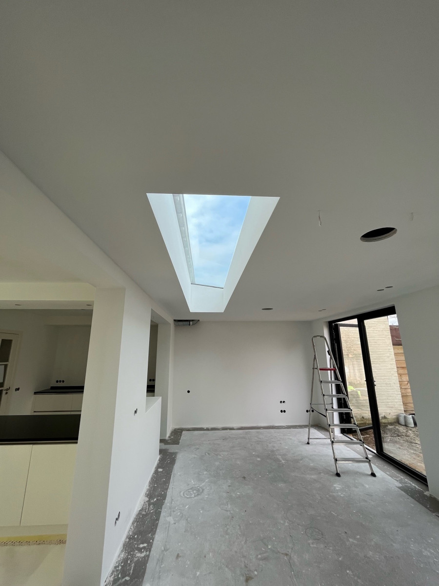 "Weer even een update. ‘T wordt echt heel mooi!! En die lichtstraat is zo mooi geworden. En mega strak. Als alles af is, laat ik weer wat horen. 13 maart komt de vloer in de aanbouw". De foto's tonen we hier, zodat bezoekers een idee krijgen van wat een vlakkelichtkoepel voor een ruimte doet, zelfs al tijdens de bouw/verbouwing. En ja, de tekst zelf doet ook goed (...).