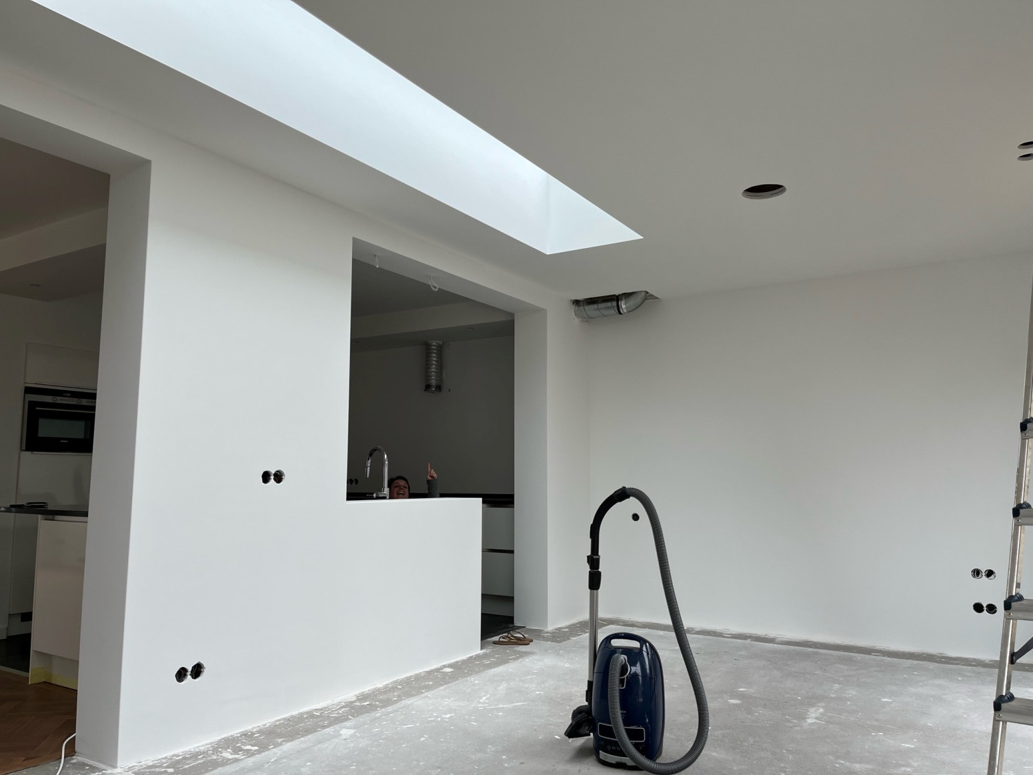 "Weer even een update. ‘T wordt echt heel mooi!! En die lichtstraat is zo mooi geworden. En mega strak. Als alles af is, laat ik weer wat horen. 13 maart komt de vloer in de aanbouw". De foto's tonen we hier, zodat bezoekers een idee krijgen van wat een vlakkelichtkoepel voor een ruimte doet, zelfs al tijdens de bouw/verbouwing. En ja, de tekst zelf doet ook goed (...).