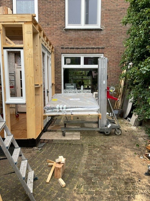 120x170 cm, voorzien van triple glas (totaal gewicht 133Kg) en gevel-aansluiting: